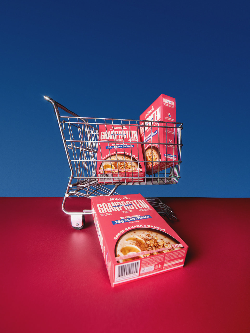 Aveia Granprotein é o novo produto da linha de proteicos da Naturale desenhada para comunicar energia, movimento e sabor. Com leitura rápida dos benefícios e forte diferenciação na gôndola. A identidade visual é caracterizada pelo nome da linha como elemento principal, sendo um verdadeiro statement de força. Além disso, os atributos nutricionais ganham destaque, reforçando o alto teor de proteína e o apelo funcional do produto. A paleta cromática diferencia os sabores de forma marcante: rosa para a aveia em flocos sabor banana e canela e azul para a aveia em flocos sabor chocolate. O resultado é uma família de embalagens que consolida Granprotein como território de performance dentro do portfólio de produtos da Naturale, empresa já reconhecida por sua atuação no mercado de alimentos saudáveis.